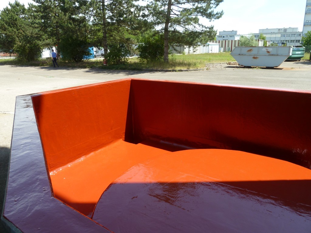 Utilisation du système NOVADUR1060T des Ets RESIPOLY CHYSOR avec marouflage d’une armature en fibre de verre.